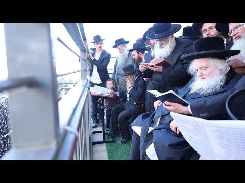 כ״ק גאב״ד ירושלים הגר״מ שטרנבוך בתפילה בעצרת המליון על אחד המרפסות