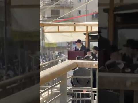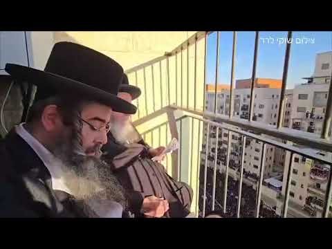 כ״ק גאב״ד ירושלים הגר״מ שטרנבוך בעצרת המליון על אחת המרפסות