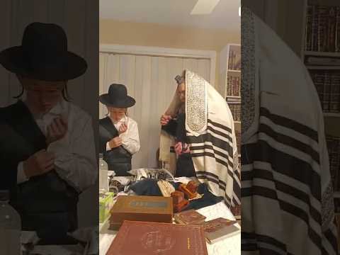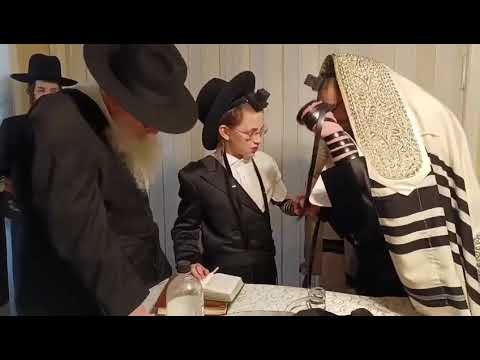 כ"ק האדמו'ר מסקולען ירושלים בהנחת תפילין לחתן בר המצווה בלאס אנג'לס
