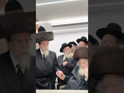 כ"ק האדמו"ר מבאיאן ב'לחיים' לרגל נישואי נכדו במעונו של מרן פוסק הדור הגר"מ שטרנבוך צילום דוד ארזני
