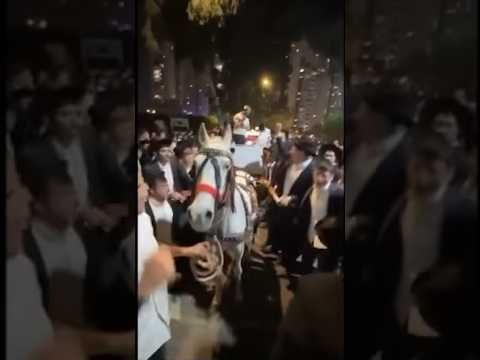 בשעה חמש לפנות בוקר כ"ק האדמו'ר מלעלוב ארה"ב בריקוד המצווה טאנץ בחתונת נכדתו שהתקיימה בבני ברק