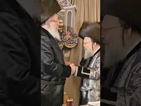 כ"ק האדמו"ר מבאיאן ב'לחיים' לרגל נישואי נכדו במעונו של מרן פוסק הדור הגר"מ שטרנבוך צילום דוד ארזני