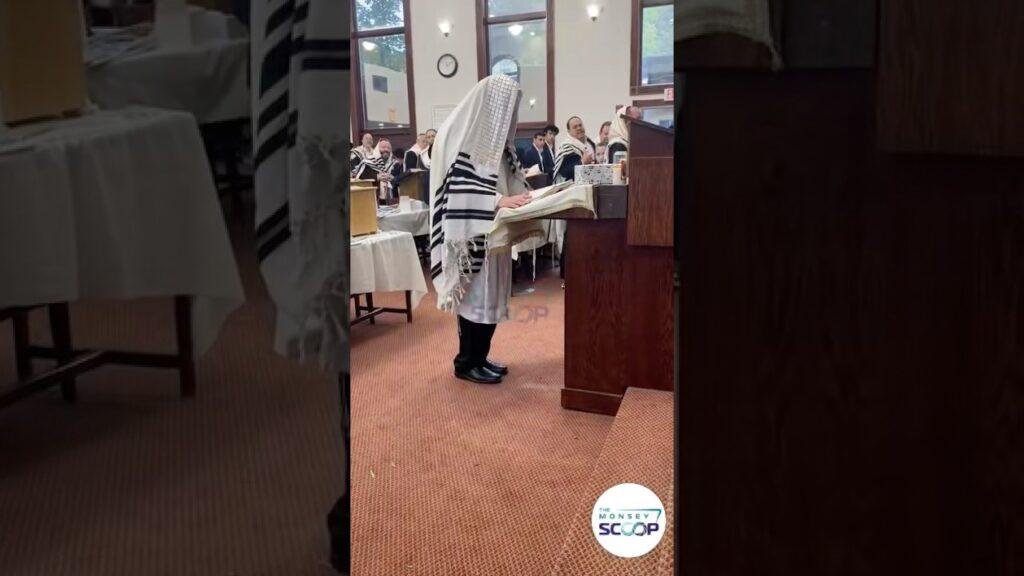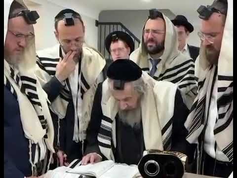 ראש הישיבה הגר"ד לנדו בברכת הגומל בתפלת שחרית בבית האכסניא בקליבלנד. צילום: מאיר זלזניק